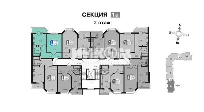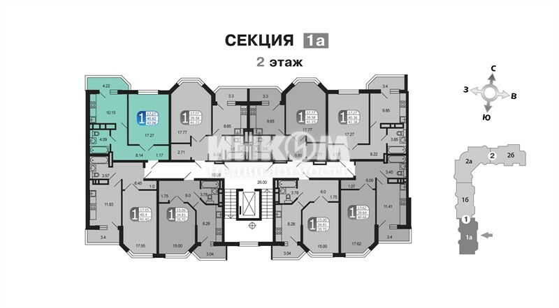 Продажа 1-комнатной квартиры, 42.2 м², этаж 2/9
