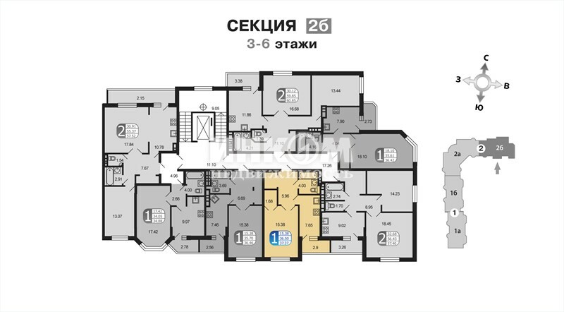 Жилая 15.38 м2