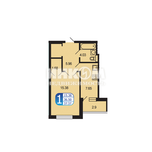 Продажа 1-комнатной квартиры, 37.37 м², этаж 6/7