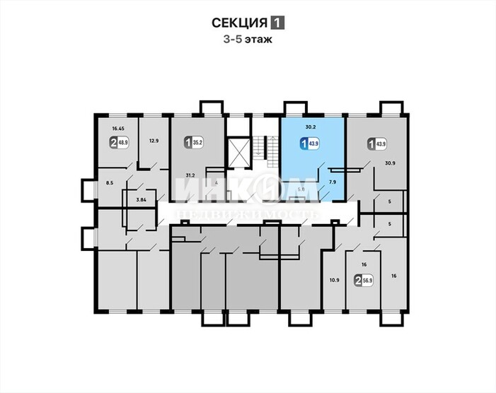 Продажа 1-комнатной квартиры, 41.9 м², этаж 5/9