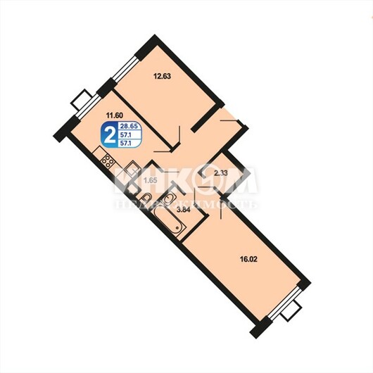 Продажа 2-комнатной квартиры, 57.1 м², этаж 6/16