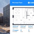 1-комнатная квартира, 3 этаж, 25.3 м2