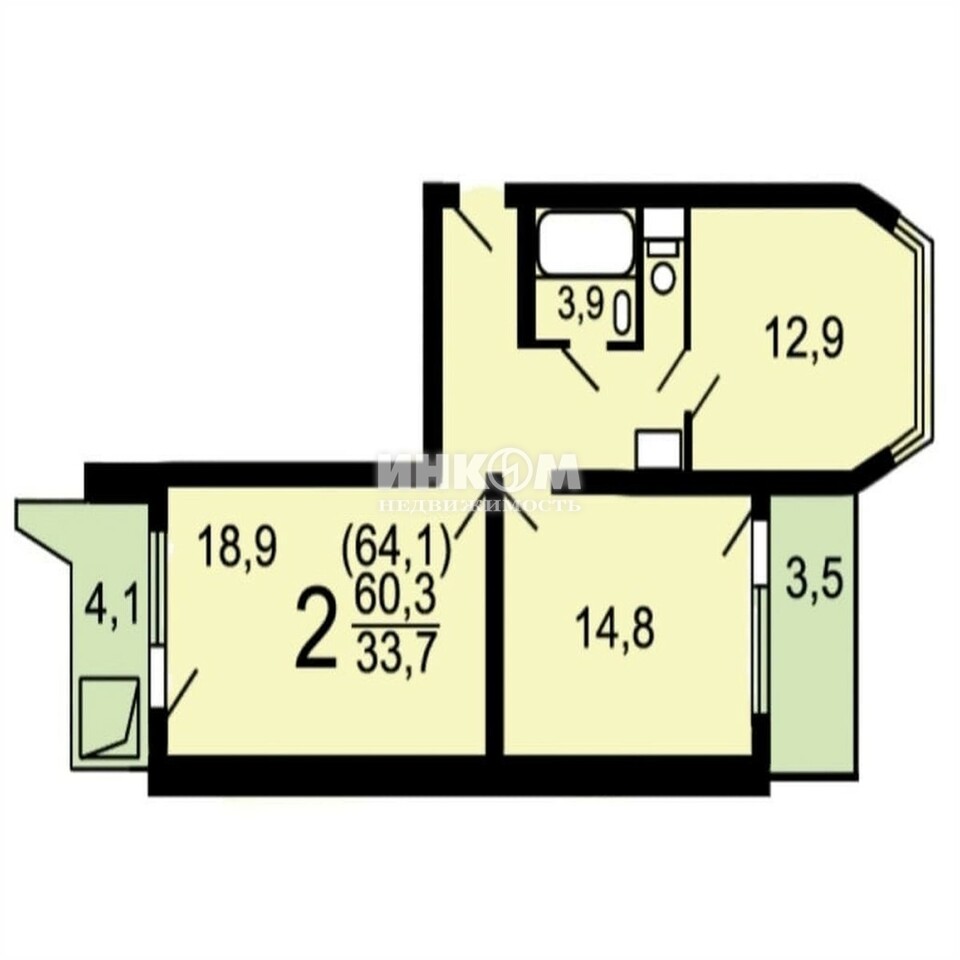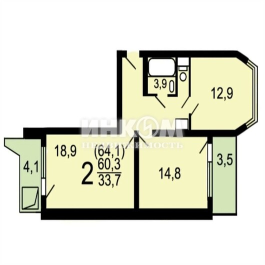 Жилая 33.7 м2
