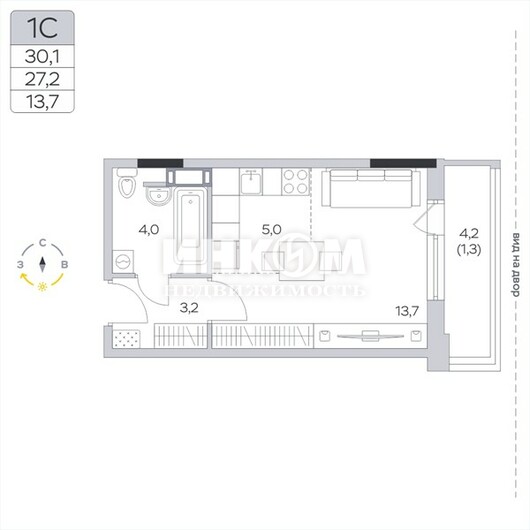 Жилая 13.7 м2