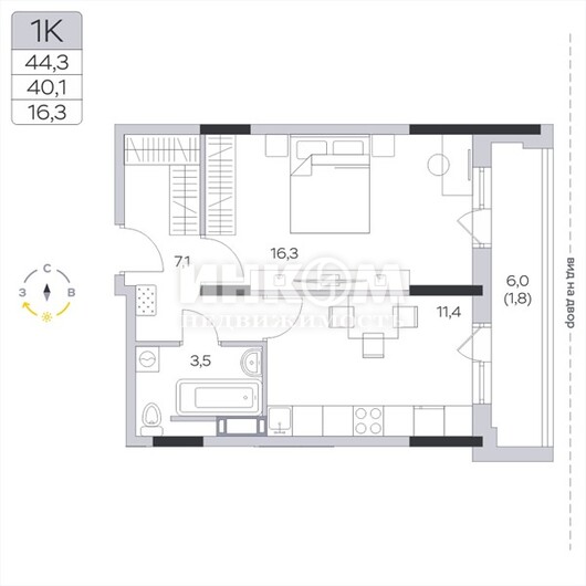Жилая 16.3 м2
