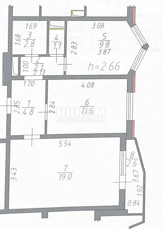 + обозначение смежных комнат