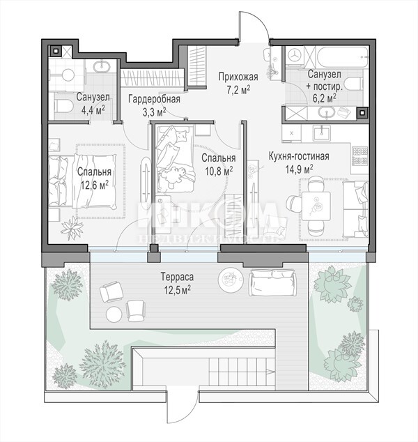 2-комнатная квартира, 2 этаж, 73.1 м2