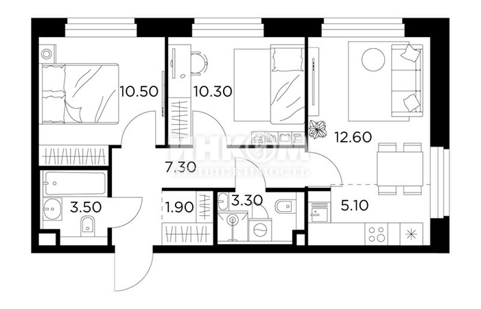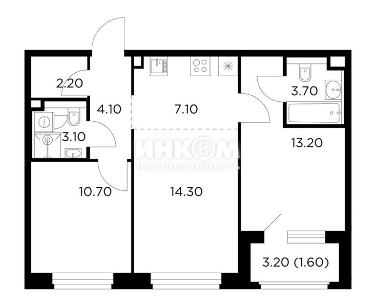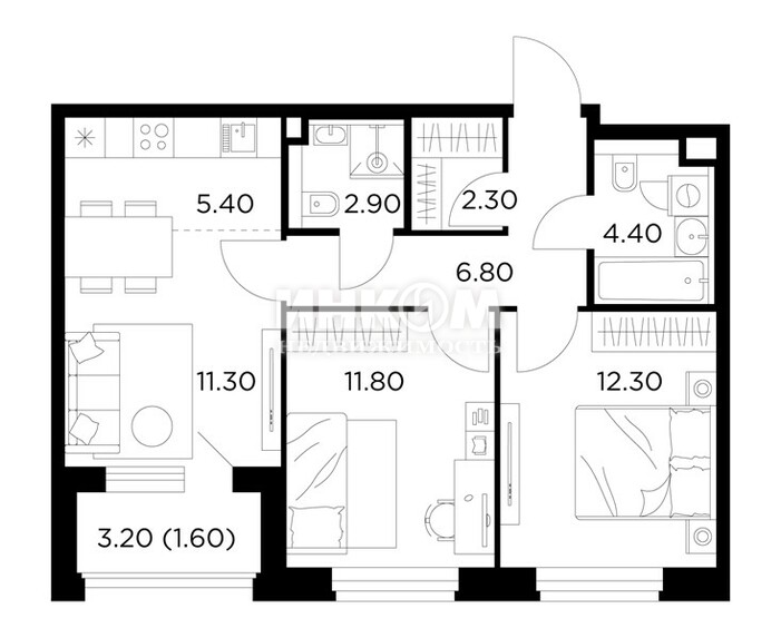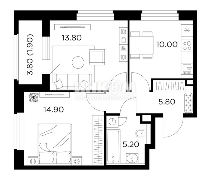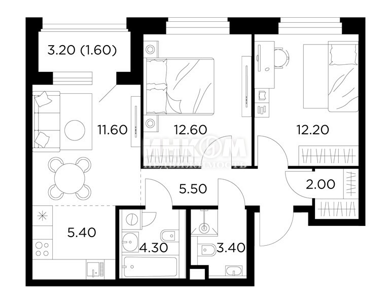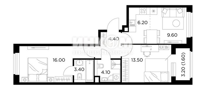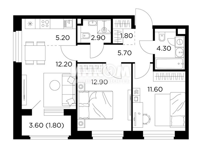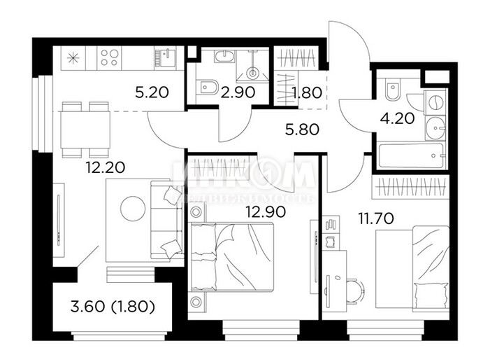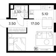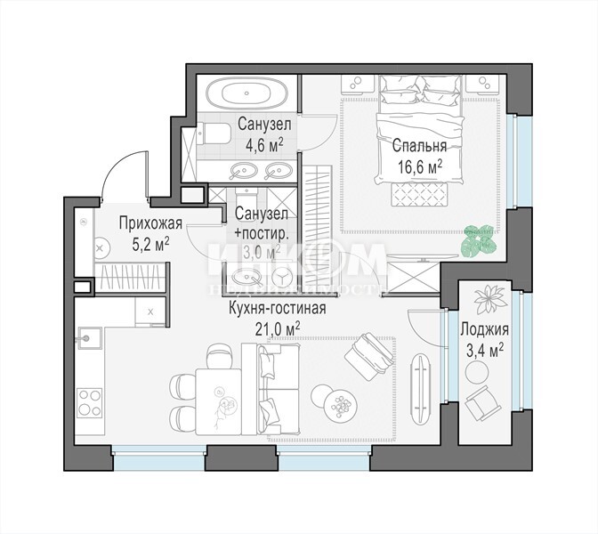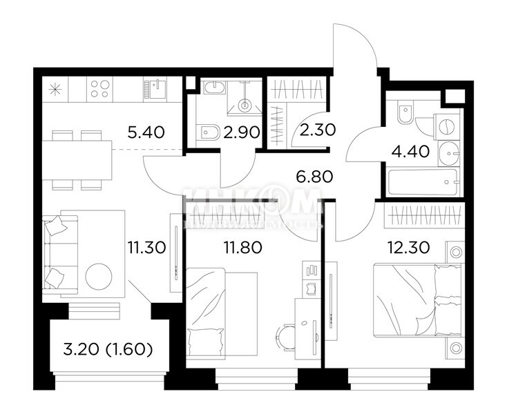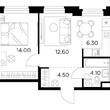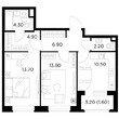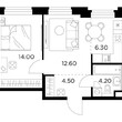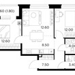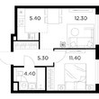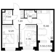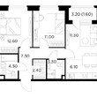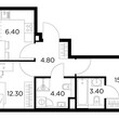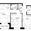 2-комнатная квартира, 2 этаж, 51.6 м2