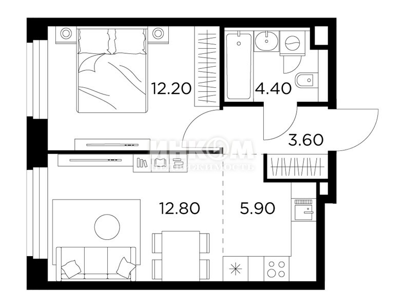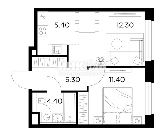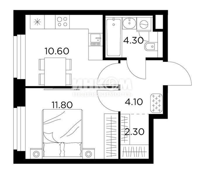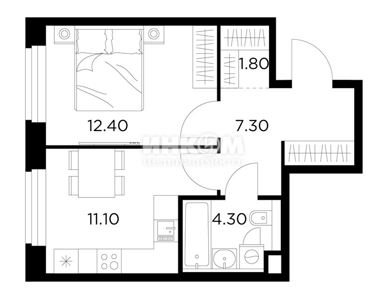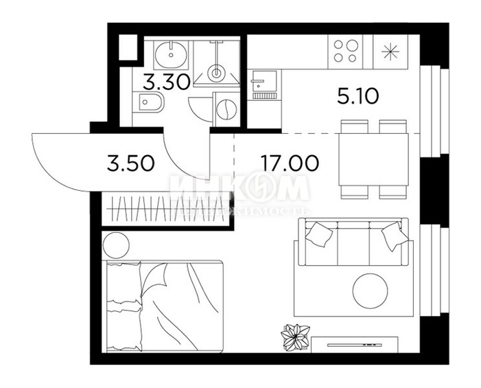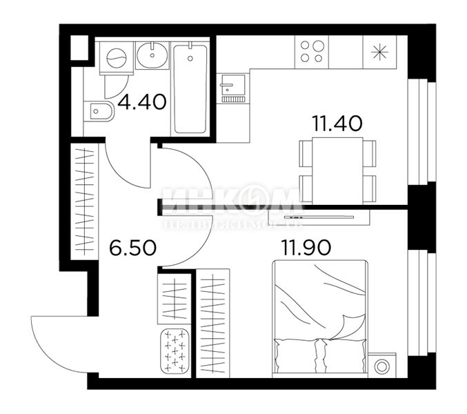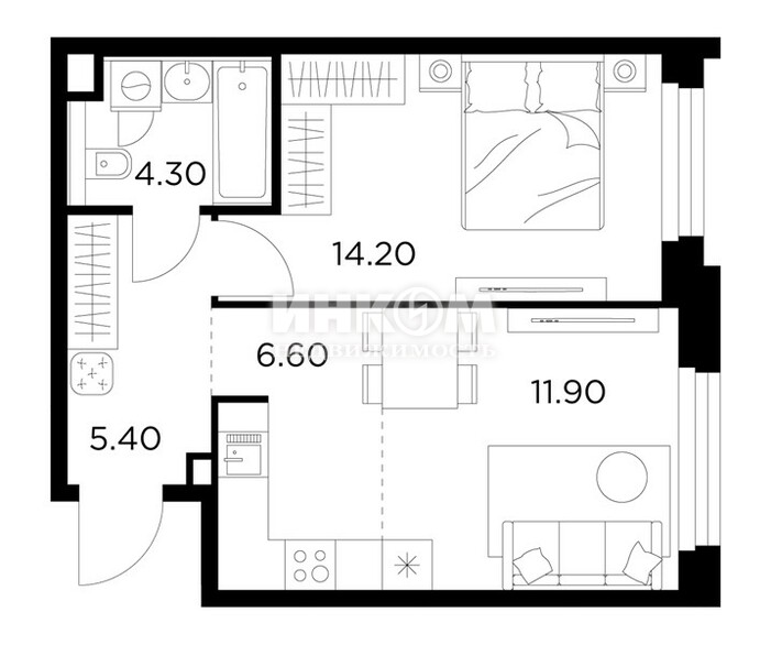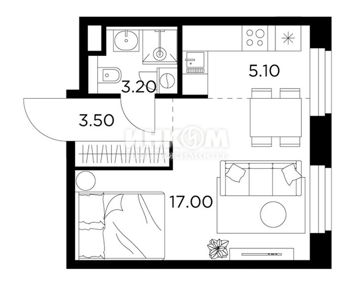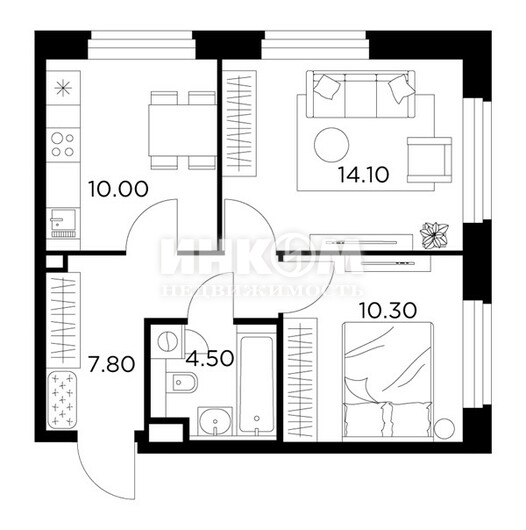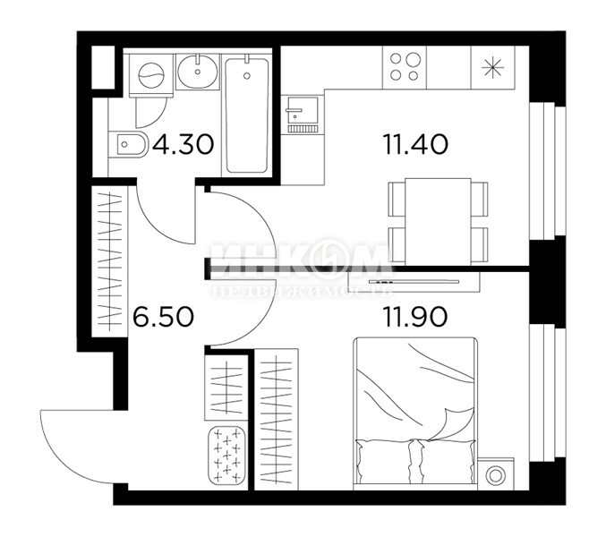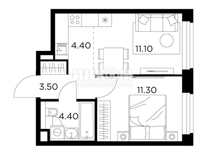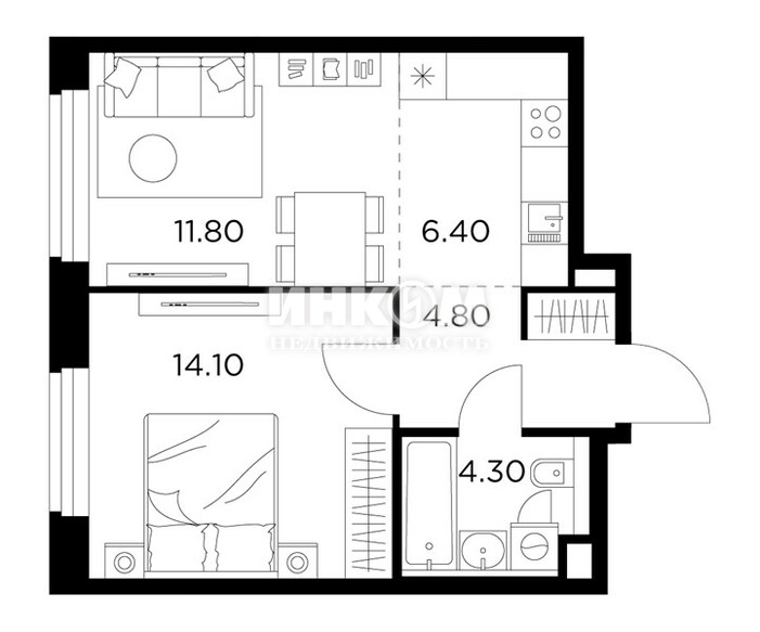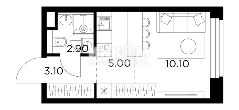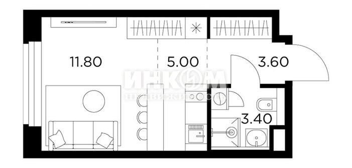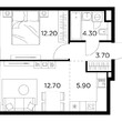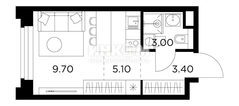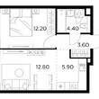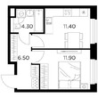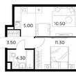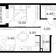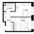 Жилая 28.7 м2