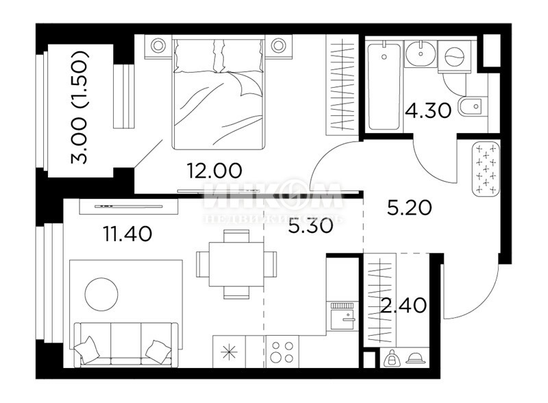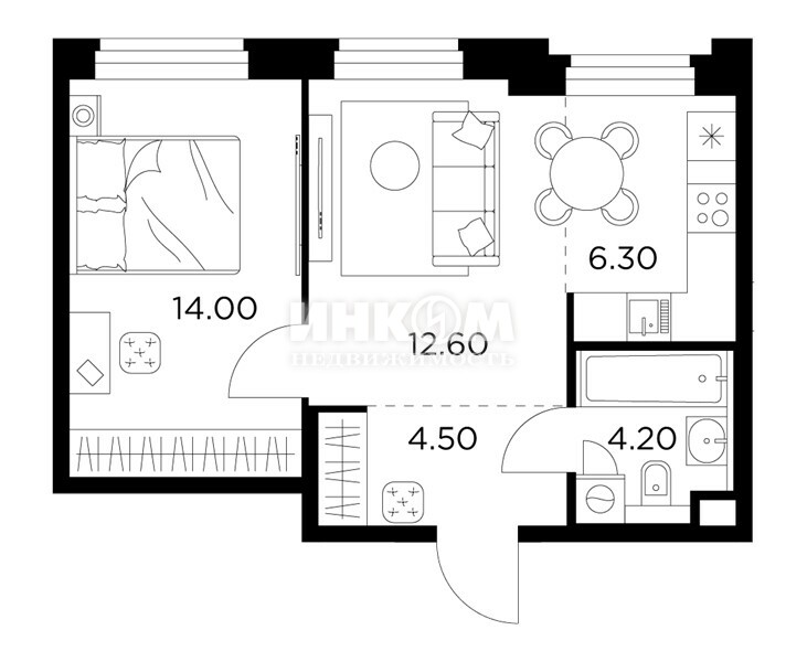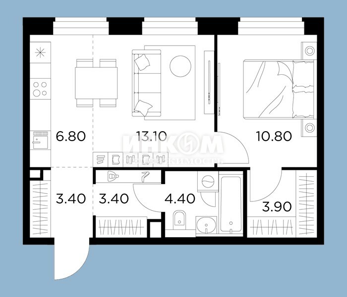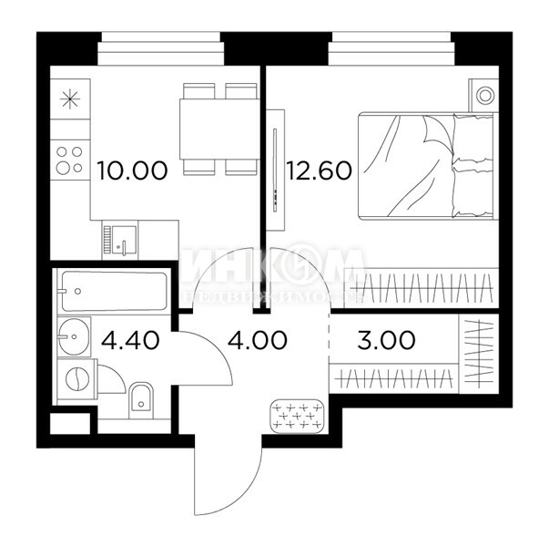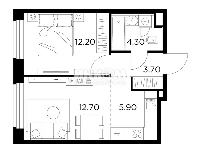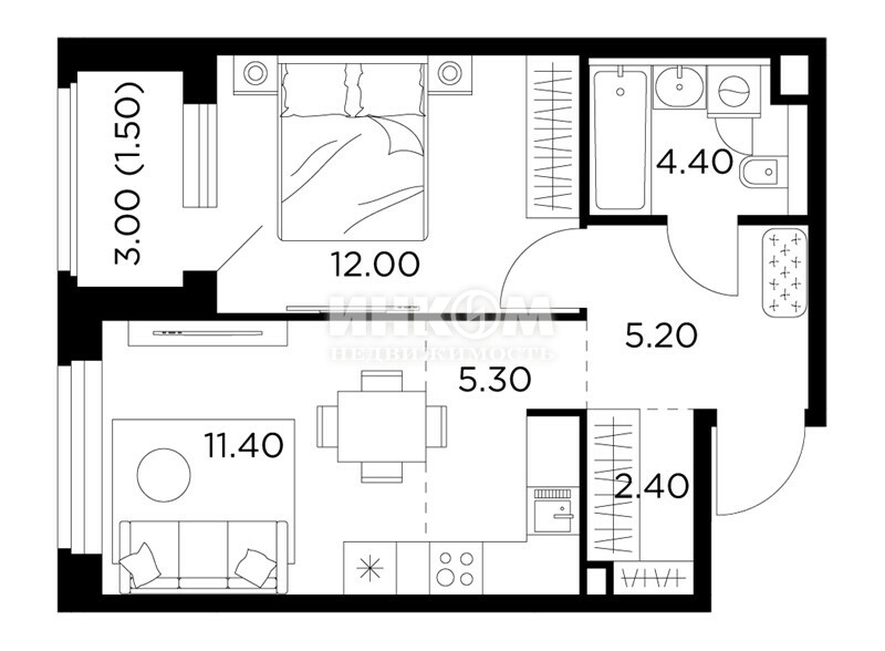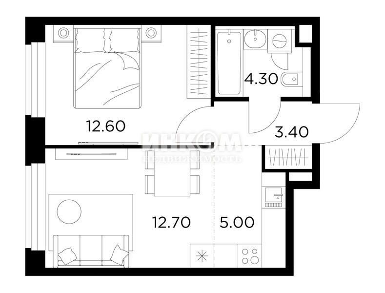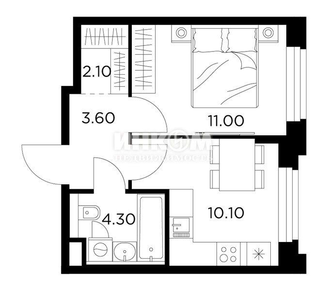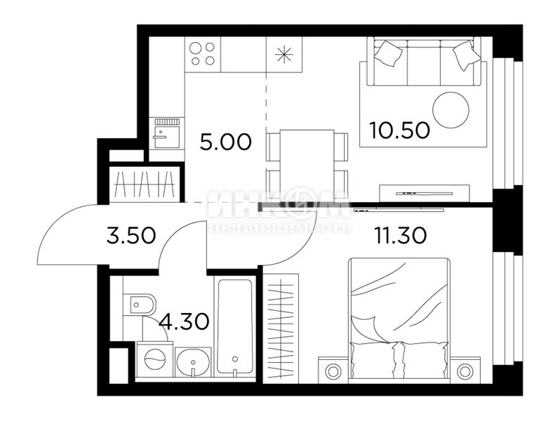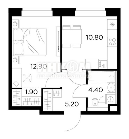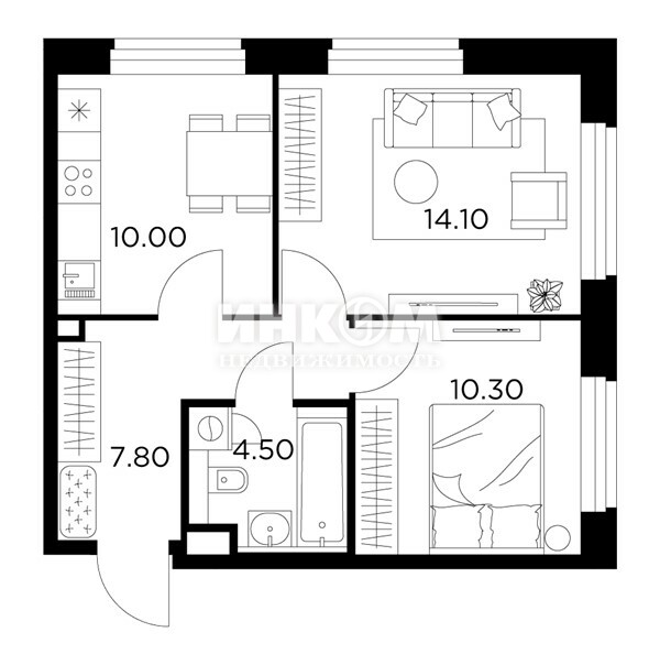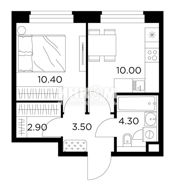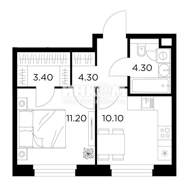 Жилая 28.7 м2