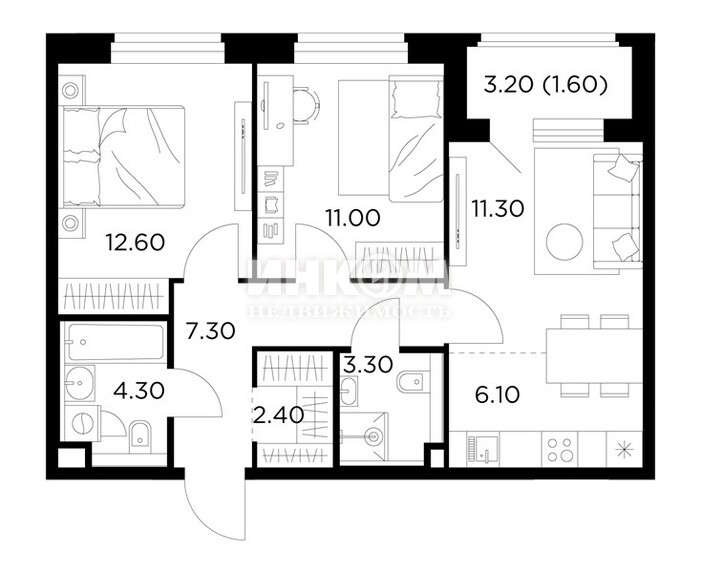 Общая 51.6 м2