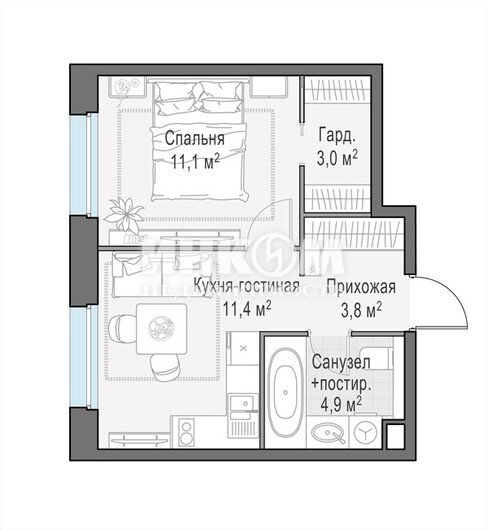 Общая 34.1 м2