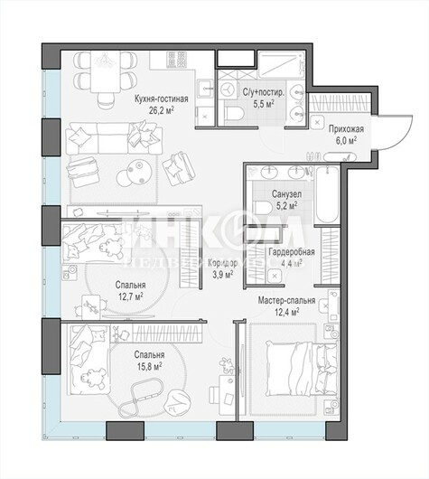 4-комнатная квартира, 13 этаж, 92.1 м2