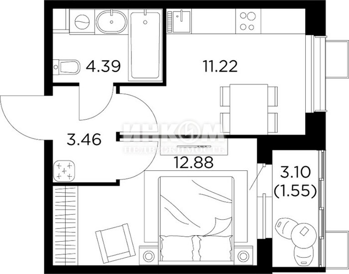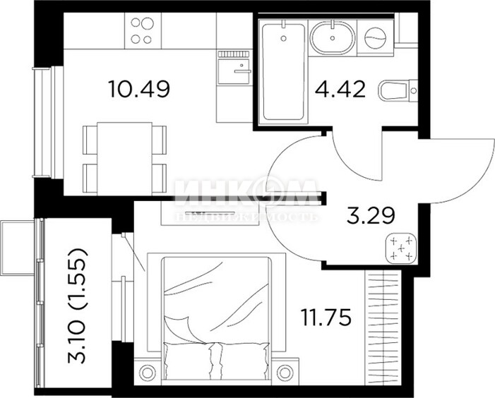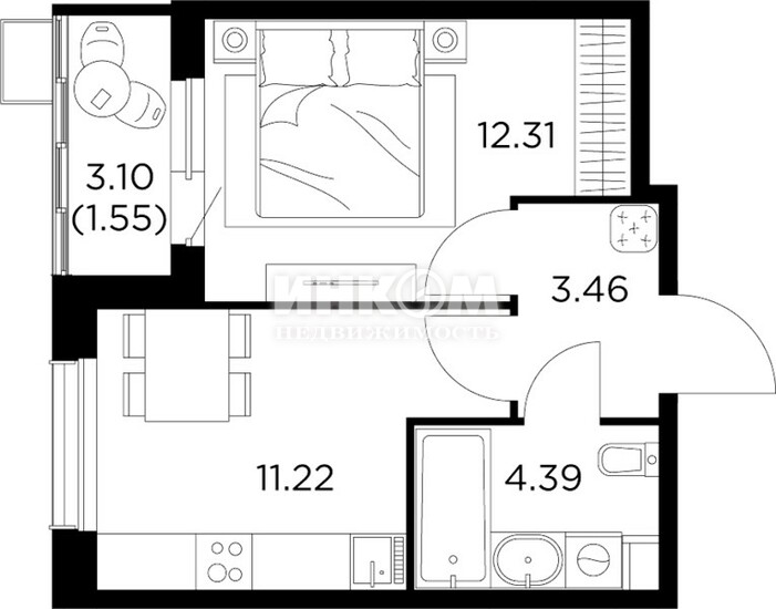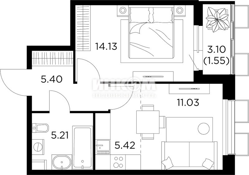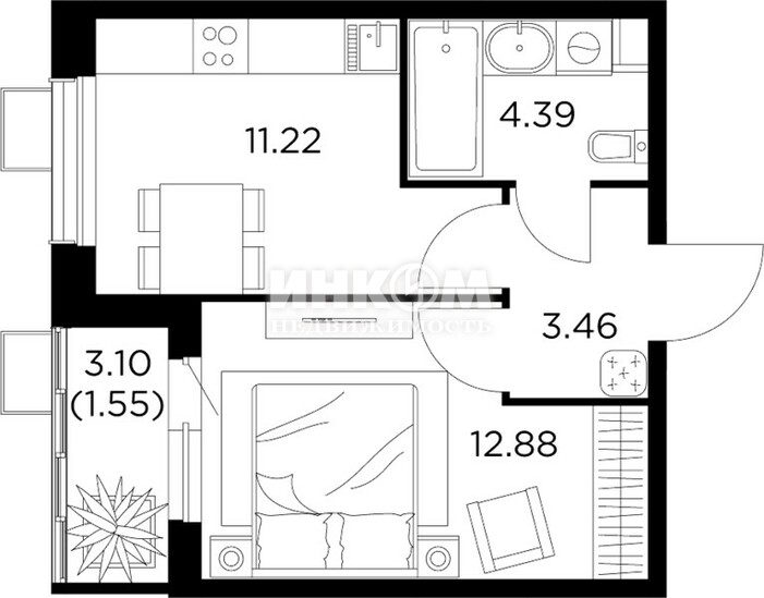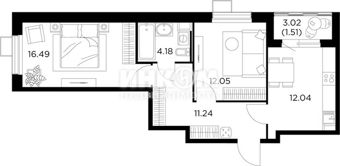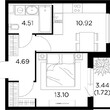 Жилая 24.1 м2