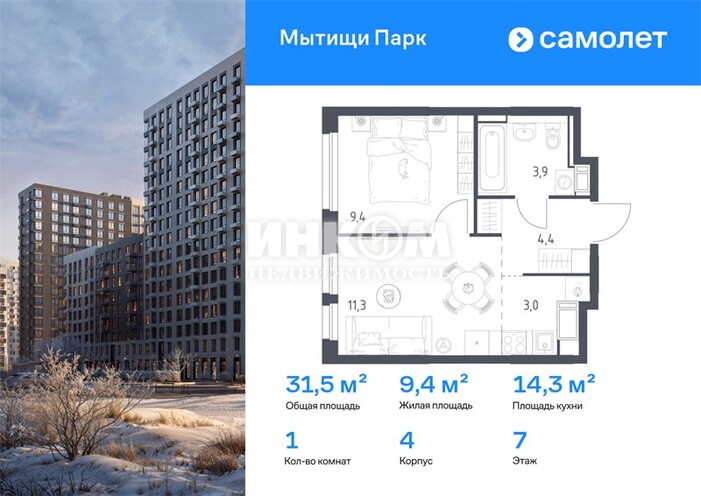 1-комнатная квартира, 7 этаж, 31.5 м2