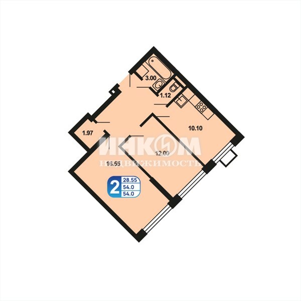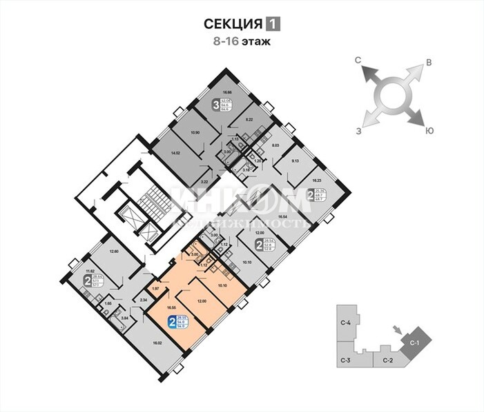 Продажа 2-комнатной квартиры, 54 м², этаж 13/16