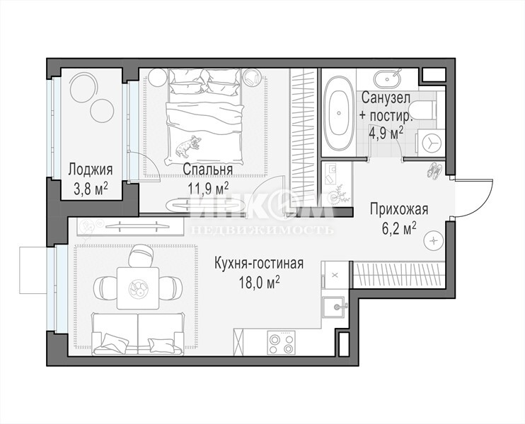 Жилая 24.8 м2