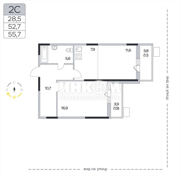 Продажа 2-комнатной квартиры, 55.7 м², этаж 3/9