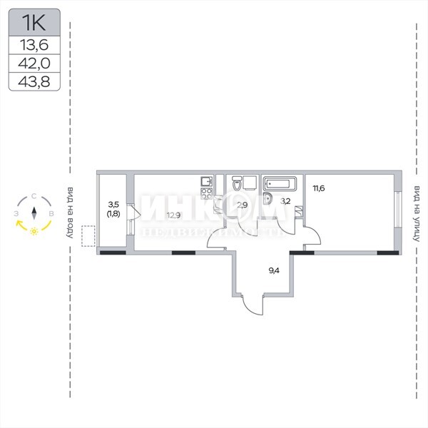 Жилая 13.6 м2