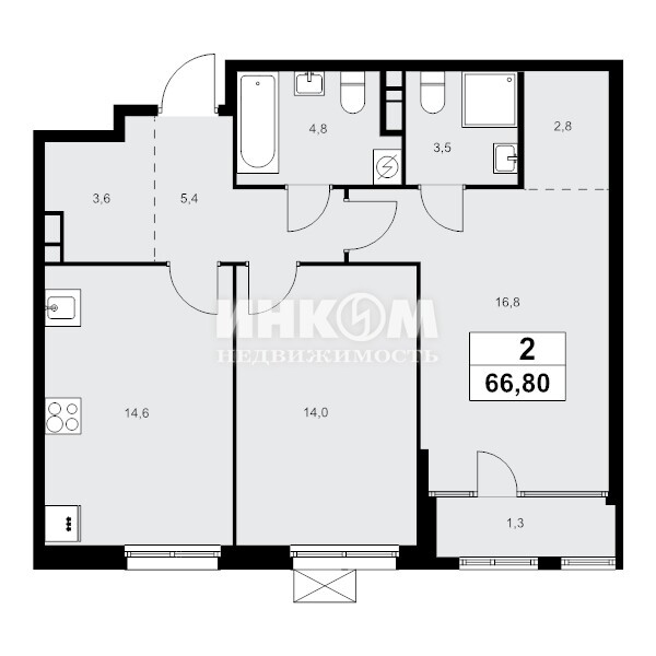 2-комнатная квартира, 7 этаж, 66.8 м2