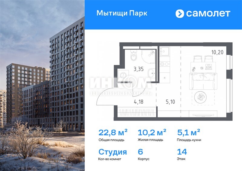 1-комнатная квартира, 14 этаж, 22.83 м2