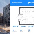 1-комнатная квартира, 17 этаж, 36.36 м2