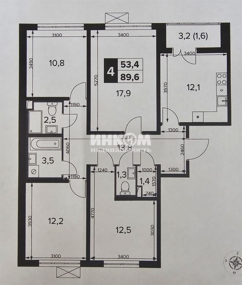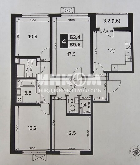 Продажа 4-комнатной квартиры, 89.6 м², этаж 3/23