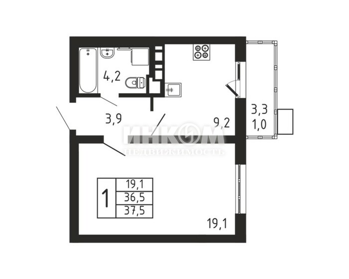 Жилая 19.1 м2