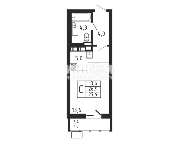 Жилая 13.6 м2