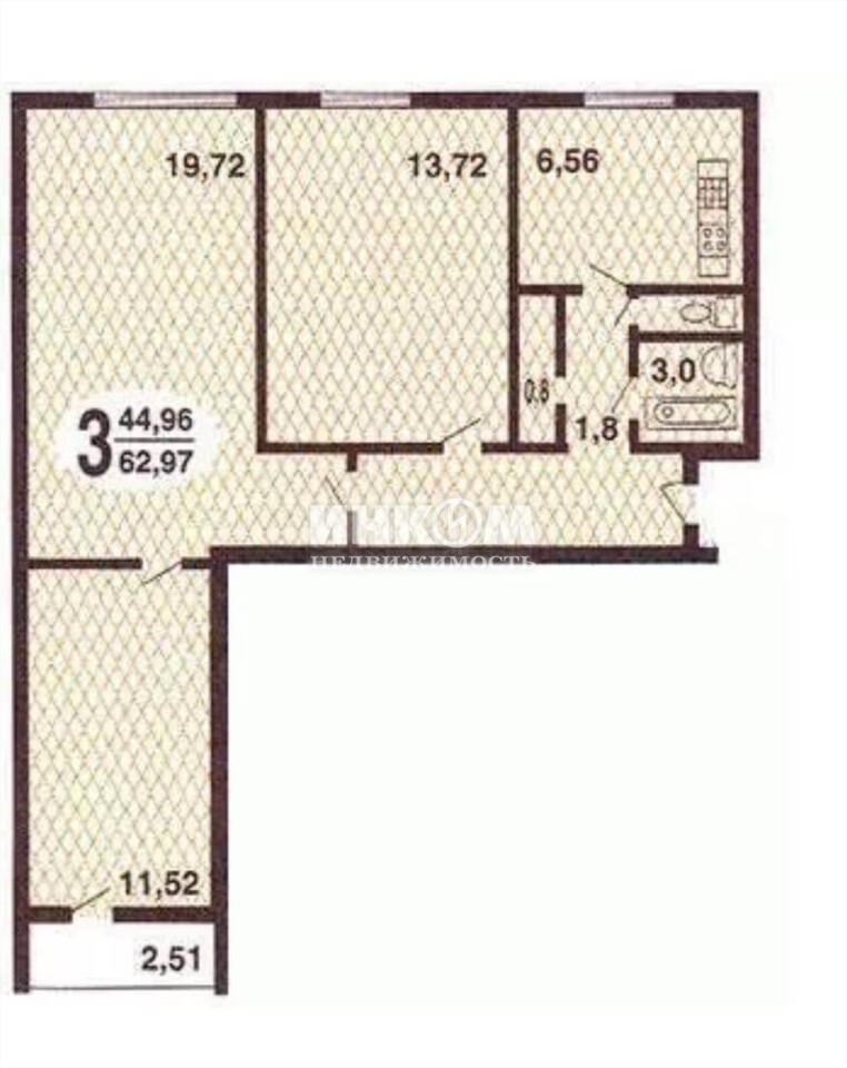 Продажа 3-комнатной квартиры, 63.1 м², этаж 7/12