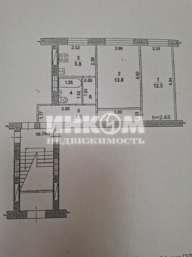 2-комнатная квартира, 1 этаж, 43.6 м2