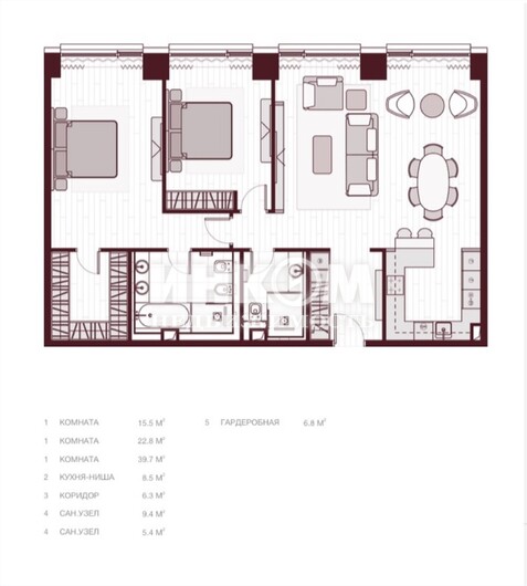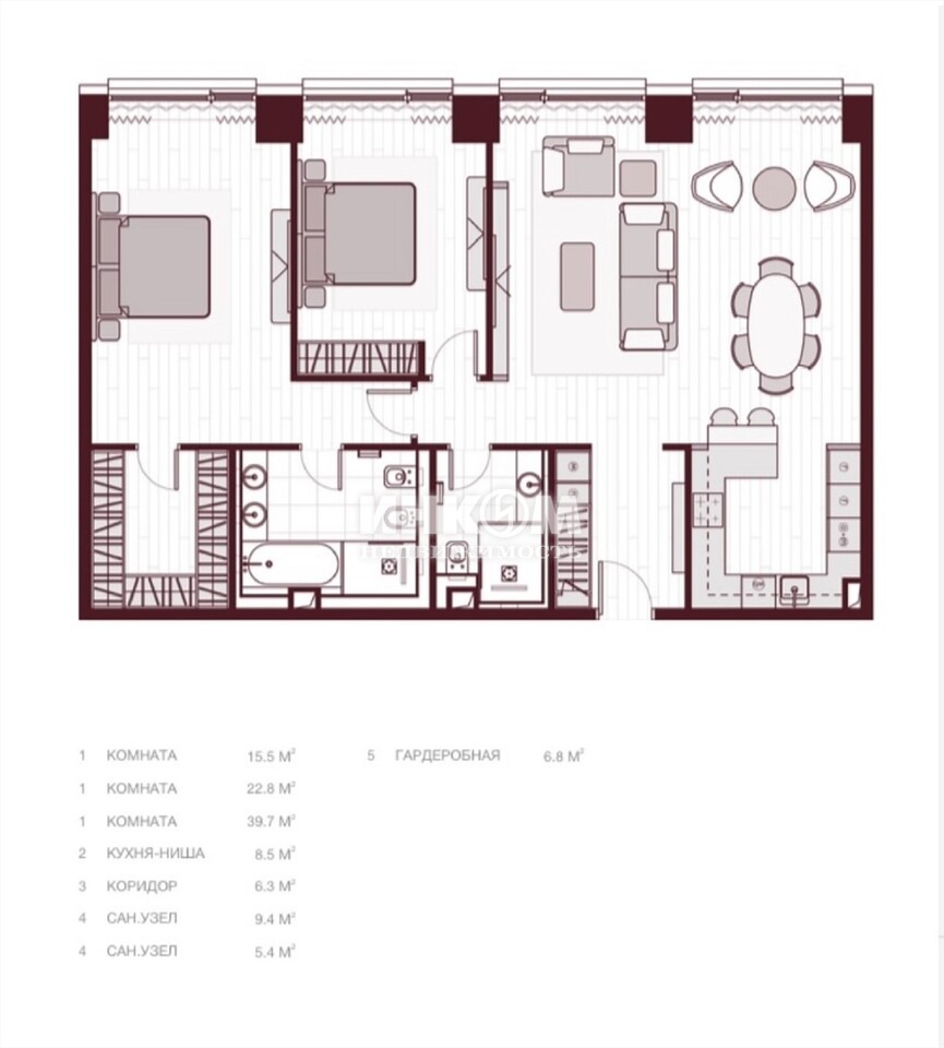 3-комнатная квартира, 26 этаж, 115 м2