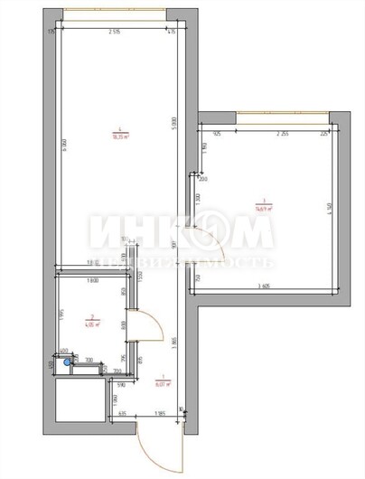 | + | обозначение смежных комнат |