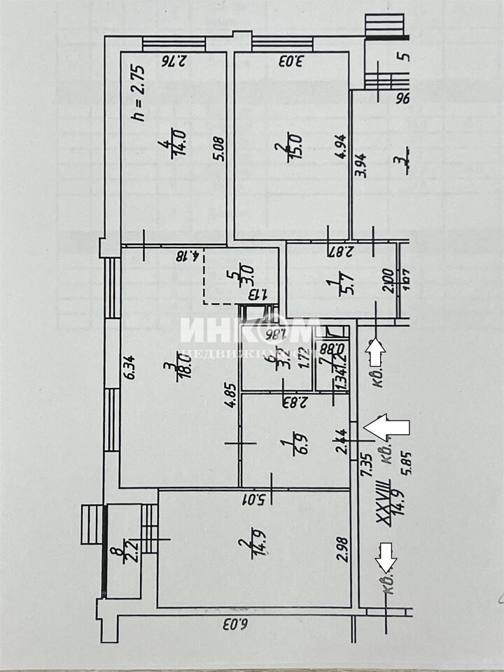 + обозначение смежных комнат