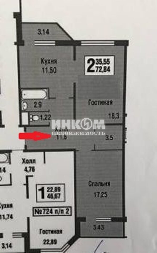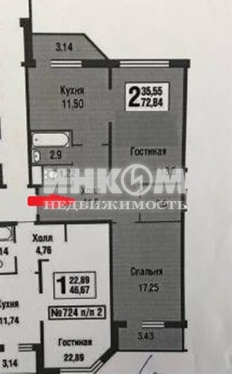 Жилая 35.55 м2