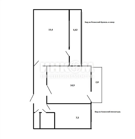Номер лота: вт-0430763. Центр Рязани, улица Грибоедова! Рядом лучшие места для прогулок и занятий спортом - Рязанский Кремль, ансамбль Почтовой улицы, Лесопарк, Рязанская ВДНХ, пешеходная зона от Кремля до Центрального рынка, Наташин парк! Двухкомнатная квартира на 6 этаже 9-тиэтажного кирпичного дома (дом с магазином "Ткани"). Общая площадь квартиры без лоджии и балкона - 50,9 кв. м. Просторные лоджия (6,62 кв. м) и балкон (2,8 кв. м). Кухня 7,5 кв. м. Очень удобная планировка, изолированные комнаты 19 и 14 кв. м, санузел раздельный. Квартира тёплая и светлая. Хорошие виды из окна на новый сквер, реставрируемый Казанский монастырь и на Рязанский Кремль. Замечательные соседи! Квартира готова к проживанию. Развитая инфраструктура. Хорошая транспортная доступность и удобный выезд за город в сторону реки Оки, Солотчи, Касимова и Спасска! Юридически свободна, документы проверены. Два взрослых собственника. Собственность более 10 лет.