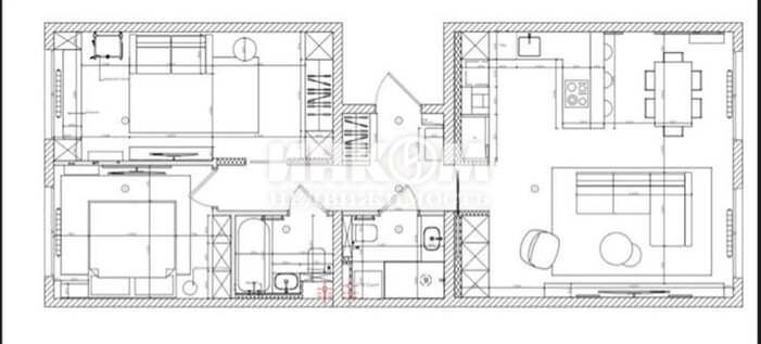 | + | обозначение смежных комнат |