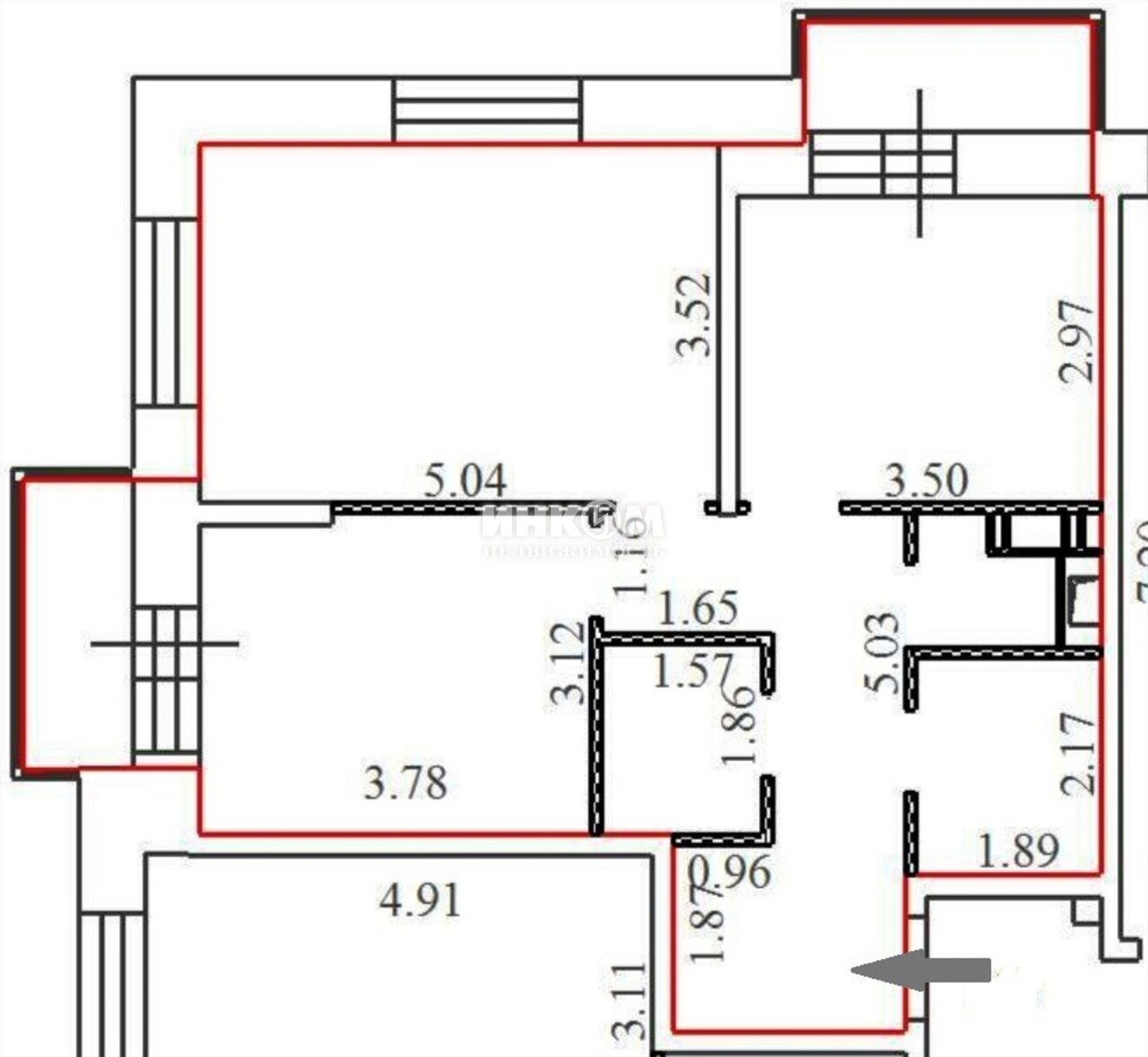 + обозначение смежных комнат