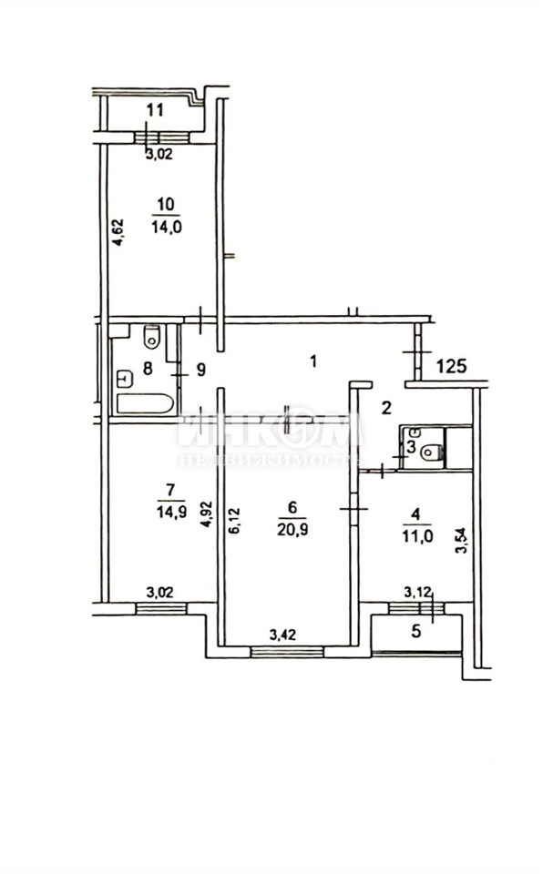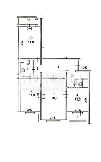 3-комнатная квартира, 11 этаж, 86.8 м2