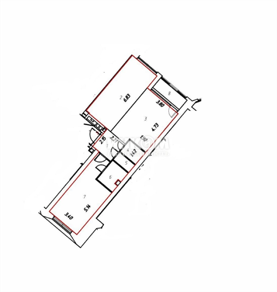 | – | обозначение изолированных комнат |