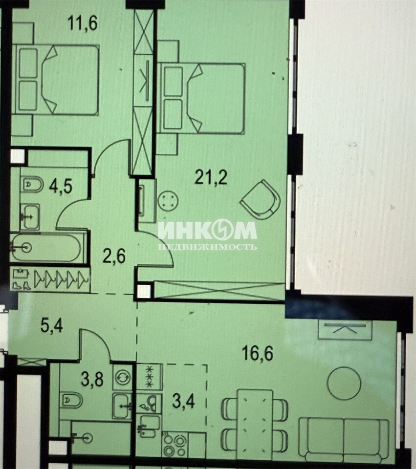 Жилая 49.4 м2