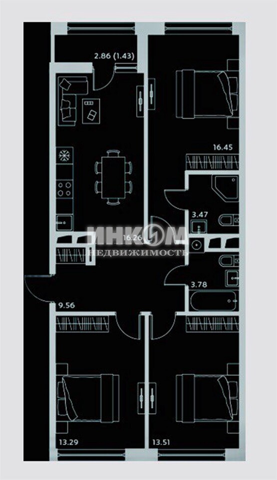 Жилая 43.3 м2