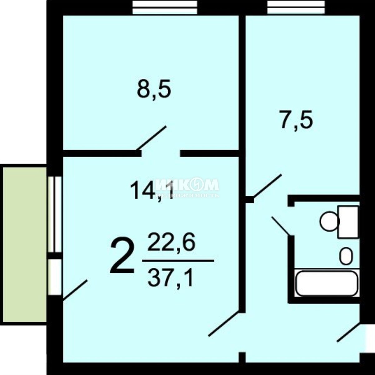 Жилая 22.6 м2
