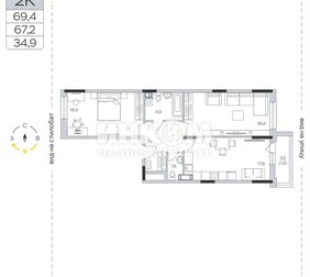 2-комнатная квартира, 66.7 м², этаж 9/9