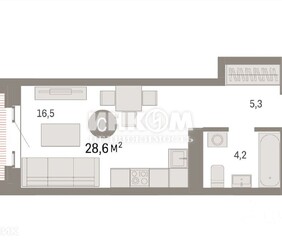 1-комнатная квартира, 30.5 м², этаж 5/5