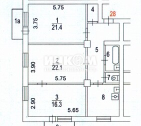 4/7 доли в 3-х ком.кв. в шаговой доступности от метро в районе ...
