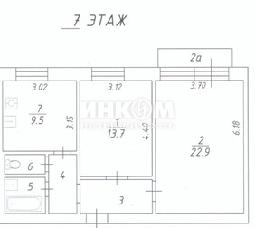 2-комнатная квартира, 57.3 м², этаж 7/8