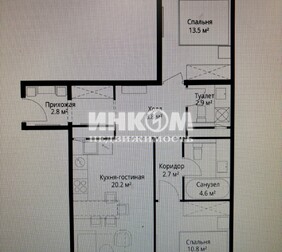 Доля в 2-комнатной квартире, 52.3 м², этаж 1/14
