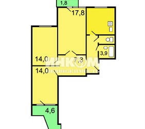 3-комнатная квартира, 63.7 м², этаж 2/12