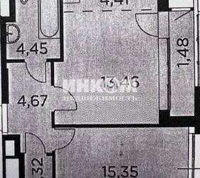 1-комнатная квартира, 46.9 м², этаж 14/16